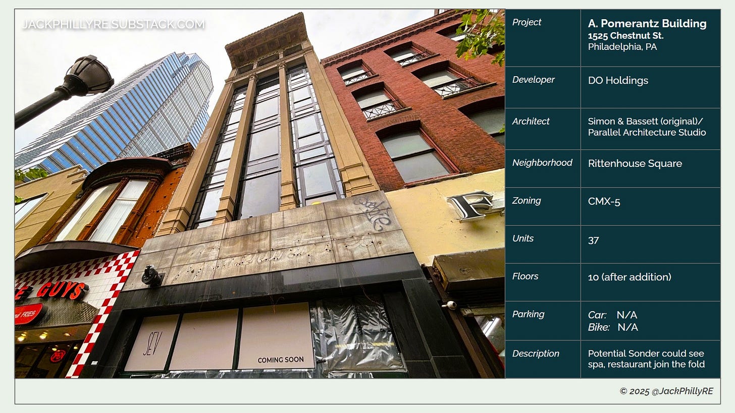 The Pomerantz Building at 1525 Chestnut St. could see an addition, a Sonder, and dining with a view - if approved