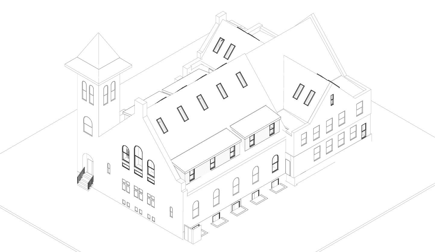 After reporting on the potential sale of the former St. John’s Baptist Church way back in November 2024, plans for an apartment conversion went to the Historical Commission for a conceptual review late last year. After some feedback, the project returned for another conceptual review just yesterday. We weren’t able to attend the meeting, but these new plans called for an adjusted approach, with skylights and shed dormers taking the place of the choppier dormer approach that was proposed previously from Toner Architects. 28 units are now planned here, with the developers hoping to replace the existing, leaking slate roof tiles for slate-looking asphalt shingles, which could save up to $200,000.